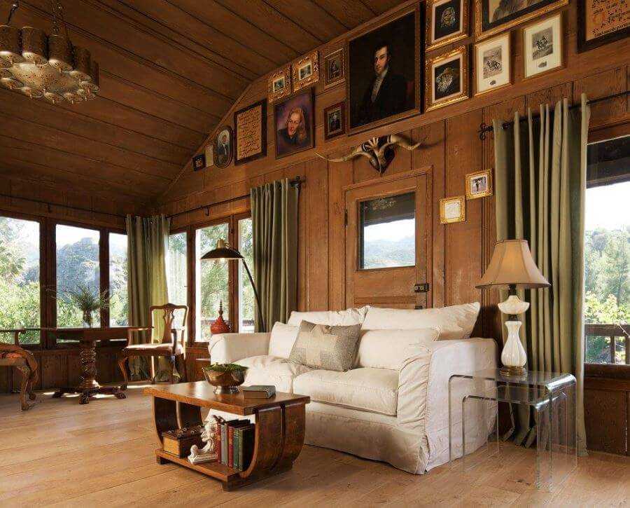 Декором окон являются жалюзи или тканевые ролл-ставни. Занавески или гардины в американской гостиной используются нечасто.