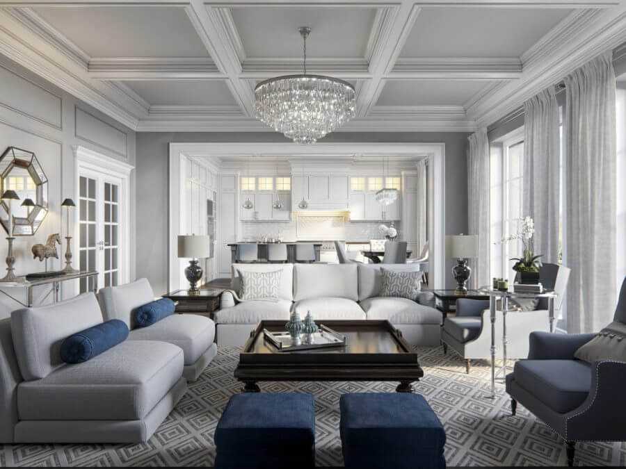 Гибкость неоклассического стиля в американском интерьере дает возможность совмещать современные достижения в строительстве и технике вместе с классическими правилами интерьера.