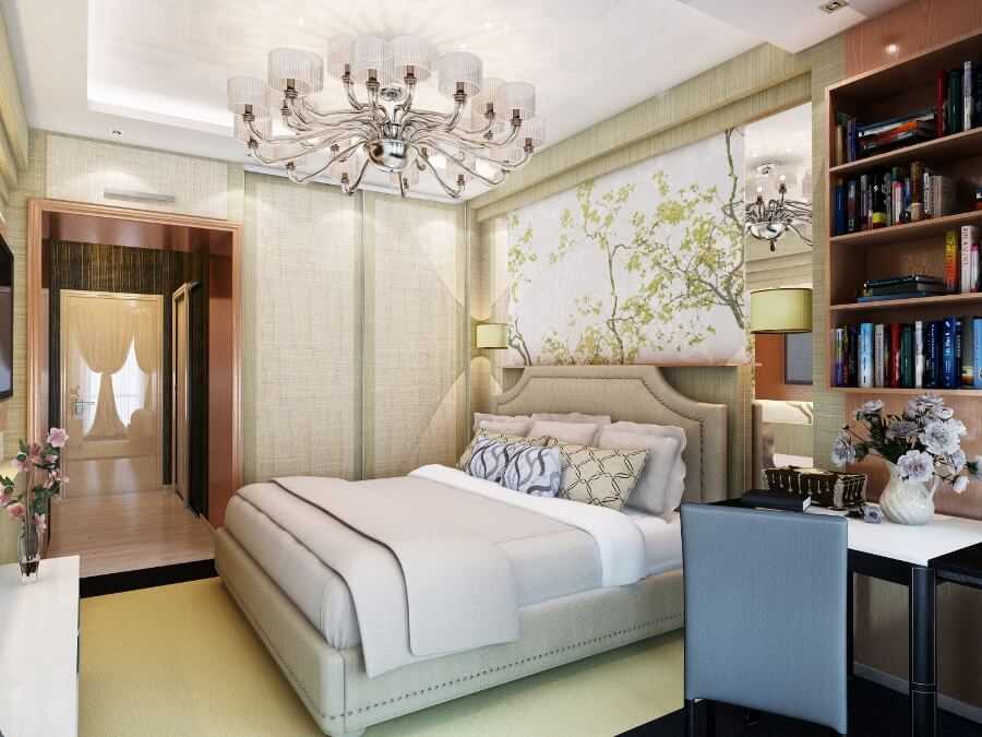 Для спальной зоны выбирают материалы натурального происхождения. Кровать классического стиля располагают возле стены, возле нее ставят тумбочки и вместительный комод.