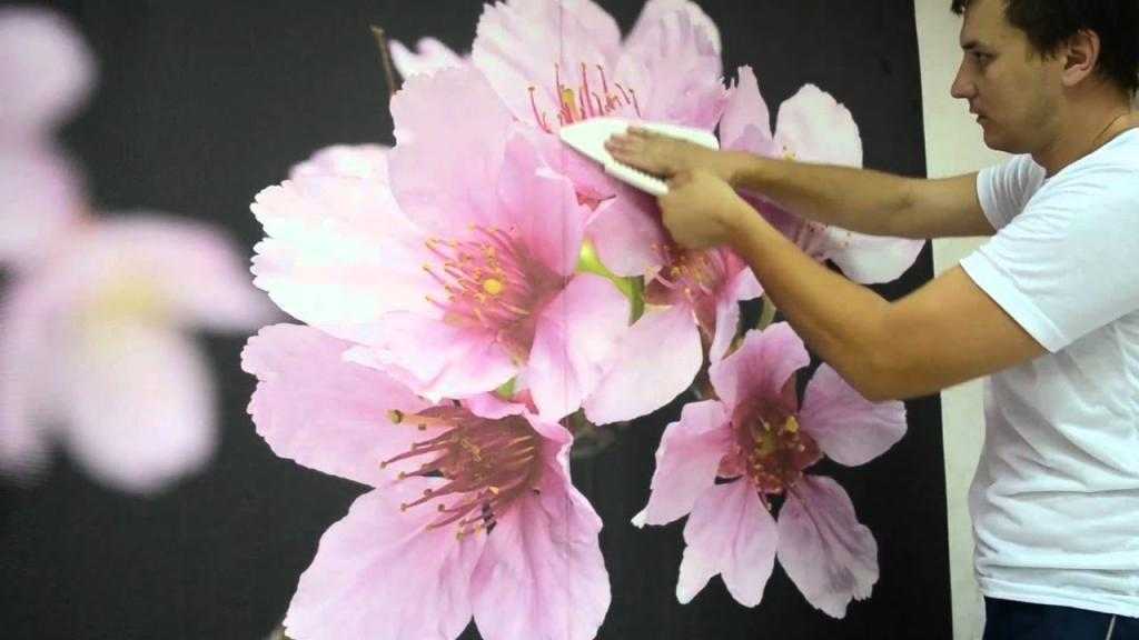 Фотообои выпускаются, разделенные на равные части с допустимым нахлестом 2 см. Ширина полосы — не более 105 см. Клеятся полосы слева направо.