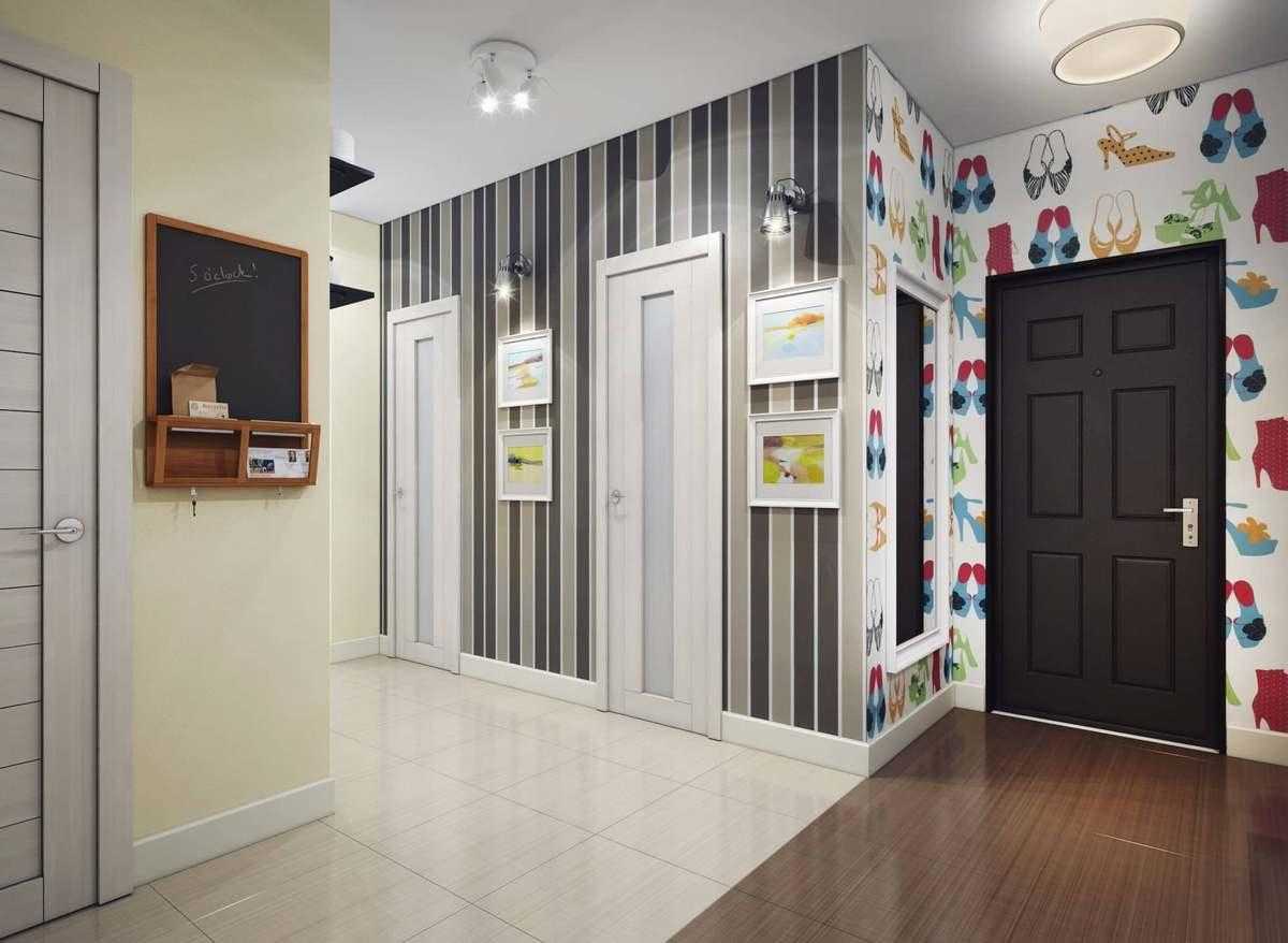 - Низ стен оклеивается обоями с различным орнаментом, горизонтальными или вертикальными линиями.