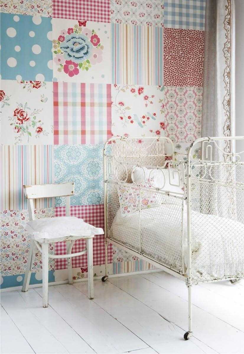 Другой способ комбинирования основан на популярной технике пэчворк (лоскутного шитья). Узор составляют из квадратных или прямоугольных кусочков шпалер. При этом также нельзя забывать о цветных сочетаниях, и выбирать не более трех оттенков. Декор подойдет для оклейки стены или всей комнаты; это хороший вариант для детской, а также кухни в стиле кантри или прованс.
