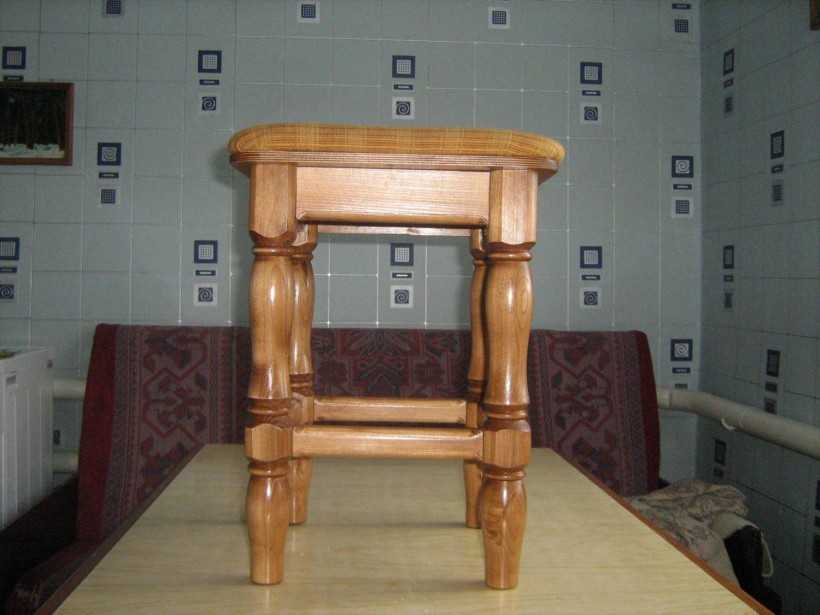 Простой табурет из дерева найдет свое место в любом доме. Некоторые модели сделать довольно просто. Специалисты рекомендуют использовать сосну, березу, дуб, бук, орех. Эти породы дерева легко обрабатываются. Сиденья для табуреток лучше сделать из досок. Подойдет обрезная цельная доска или готовые мебельные щиты. Если нет подходящих пиломатериалов, можно использовать ДСП. Изготовить табурет из массива дерева довольно дорого, трудоемко, а потому нецелесообразно. Ножки для таких моделей делаются из брусков. При желании можно попробовать сделать изделие с круглыми ножками, которые вытачивают из бруса на токарном станке. Готовые балясины — еще один неплохой вариант точеных ножек для табуреток.