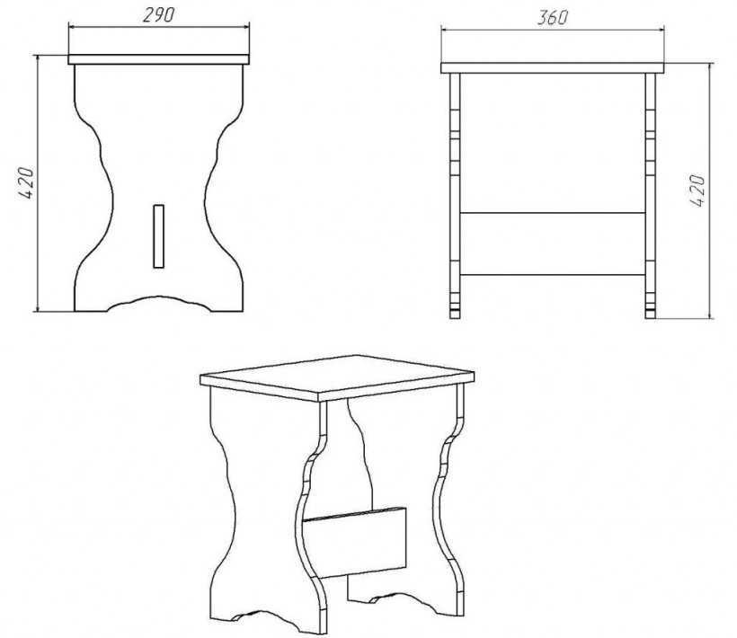 При составлении эскизов, обязательно следует четко указать не только внешние размеры табуретки, но и параметры всех внутренних элементов.