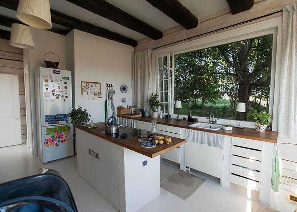 По этой причине стоит определиться со временем, когда вы больше всего проводите время на кухне: если днем — останетесь в выигрыше и сэкономите электроэнергию, если же вечером — то, скорее всего, придется делать дополнительный подвесной светильник. Более того, люди с улицы смогут наблюдать процесс мытья посуды и чистки картофеля.