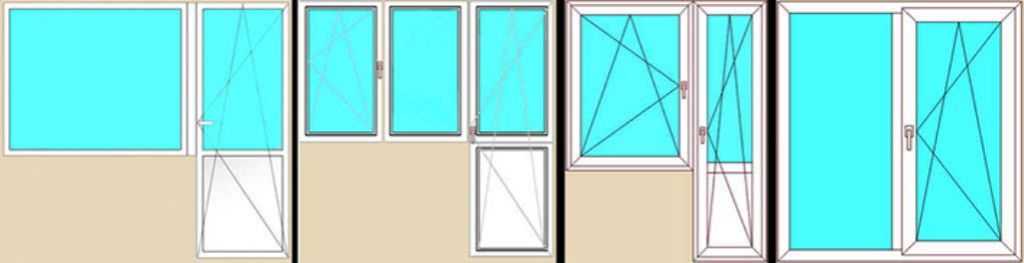 Балконные блоки различаются не только материалами, из которых их изготавливают, но и конструкцией. Под этим подразумевают расположение окон и дверей относительно друг друга, механизмы их открывания.