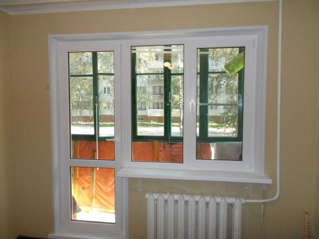 Ширина окна высчитывается с помощью разницы между общей шириной и шириной двери. Если получившееся значение требует некоторого уменьшения соединительной планки между дверью и окном, то его вполне можно допустить.