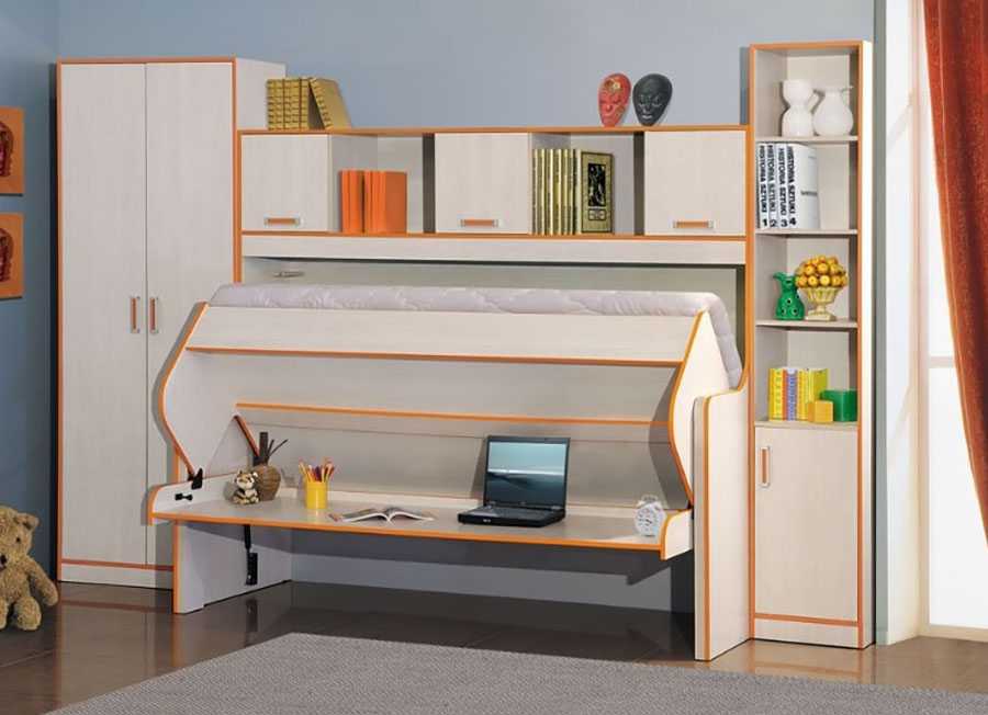 Очень часто детские комнаты имеют небольшую квадратуру. А в данном помещении должно быть оборудование для учебы и отдыха. Кровать занимает большую площадь, поэтому очень часто используют — трансформеры.
