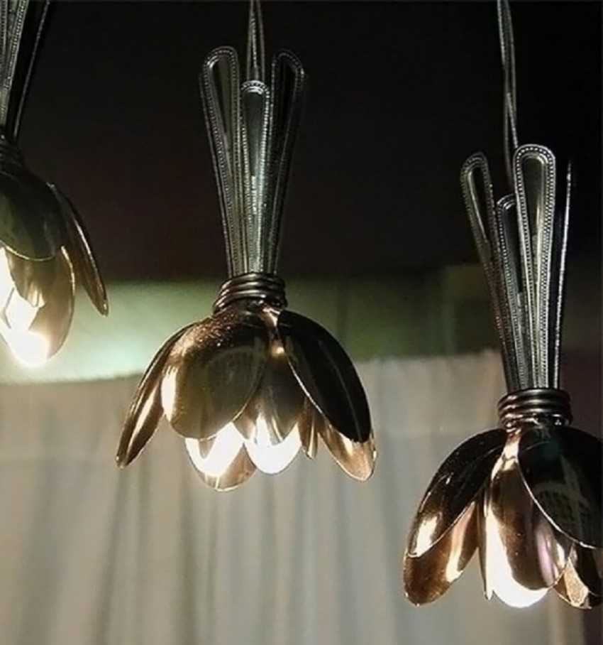 Рассматривая варианты, чем можно задекорировать светильник в домашних условиях, обратите внимание на украшение ложками