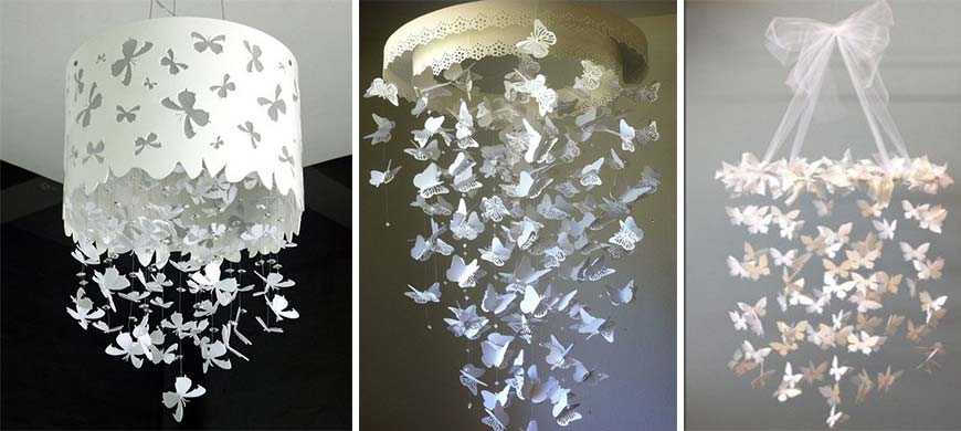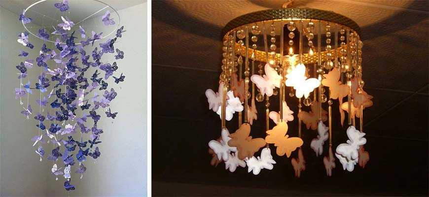 Чтобы сделать люстру с бабочками, не понадобится особых усилий, а выглядит такой вариант крайне привлекательно и оригинально.