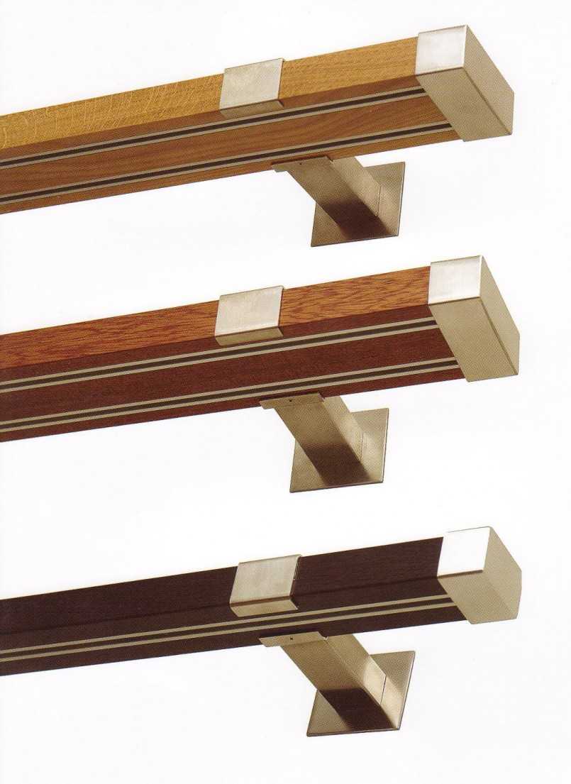 Варианты исполнения карнизных устройств: слева – металл с древесиной, справа – окрашенная сталь.