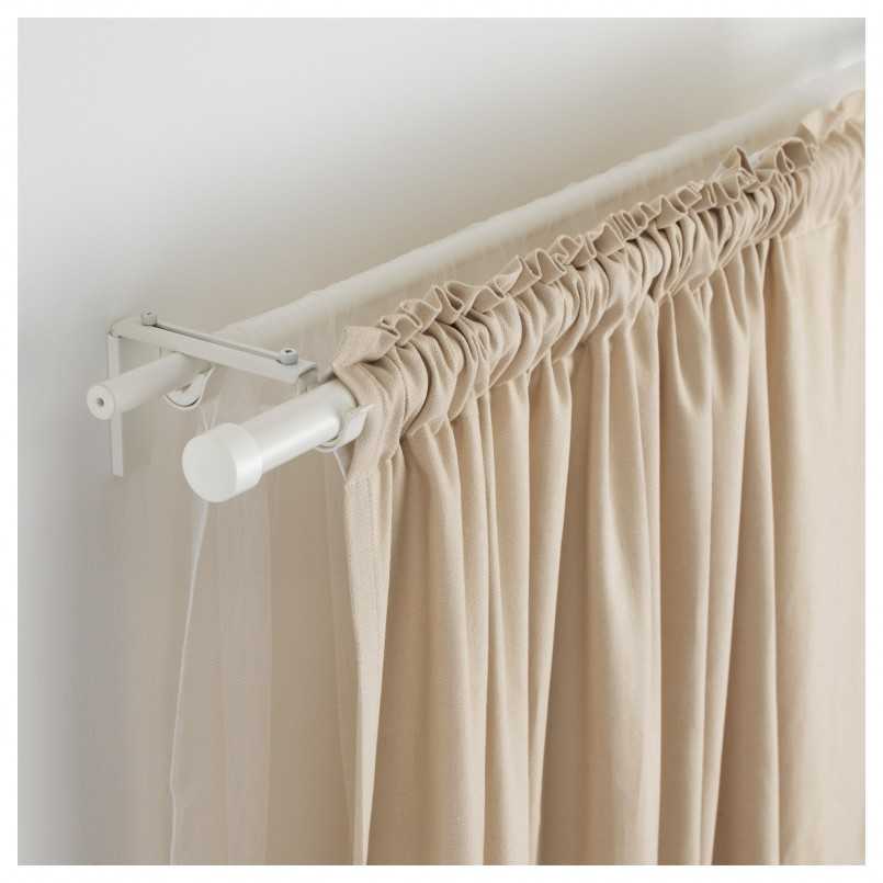 Монтаж шинных и струнных аксессуаров практически сводится только к их установке на несущее основание, так как процесс сборки этих изделий сведён к минимуму или вообще отсутствует. А вот карнизы штангового типа состоят из большего числа комплектующих, по сборке и подгонке которых нередко возникают вопросы. Поэтому рассмотрим оснащение оконного проёма аксессуаром именно такой конструкции – двухрядным штанговым карнизом промышленного изготовления.