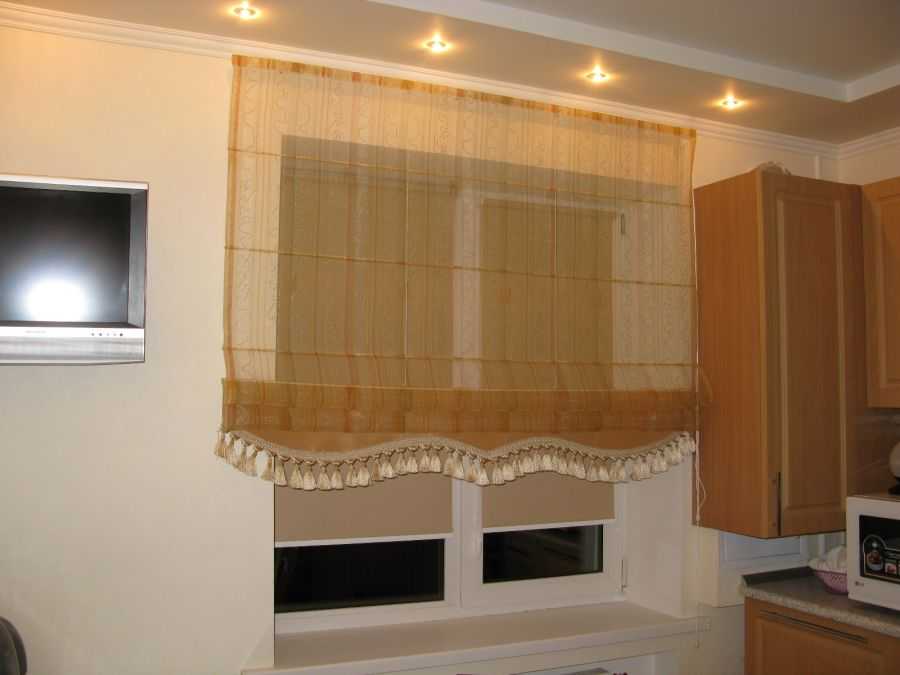 Римские шторы — отличное решение для окон над рабочей кухонной зоной