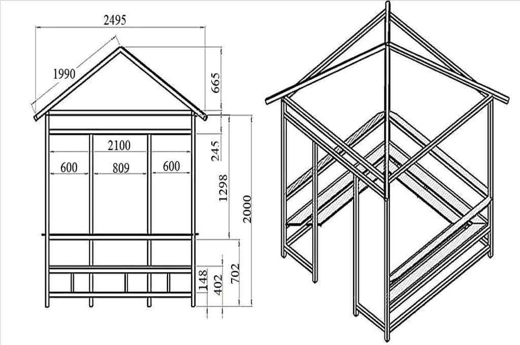 В любом случае конструкция получится легкой и не потребует фундамента — достаточно закрепить опорные столбы в грунте. Отличаются варианты только методами скрепления элементов.