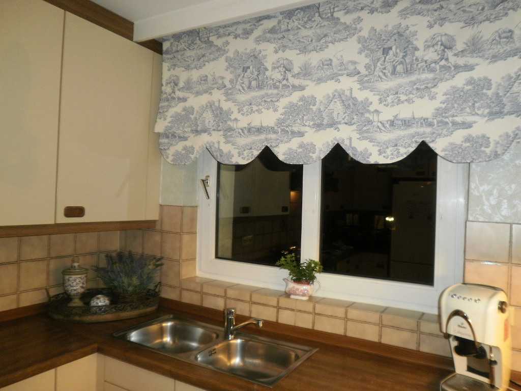 Для дачи или кухни а-ля Прованс подойдет из натуральной ткани аналогичной материалу портьер, такого же цвета или более светлого тона. Еще один вариант сочетания для кухни — тонкие легкие занавески и римская штора в тон скатерти, стен или мебели.