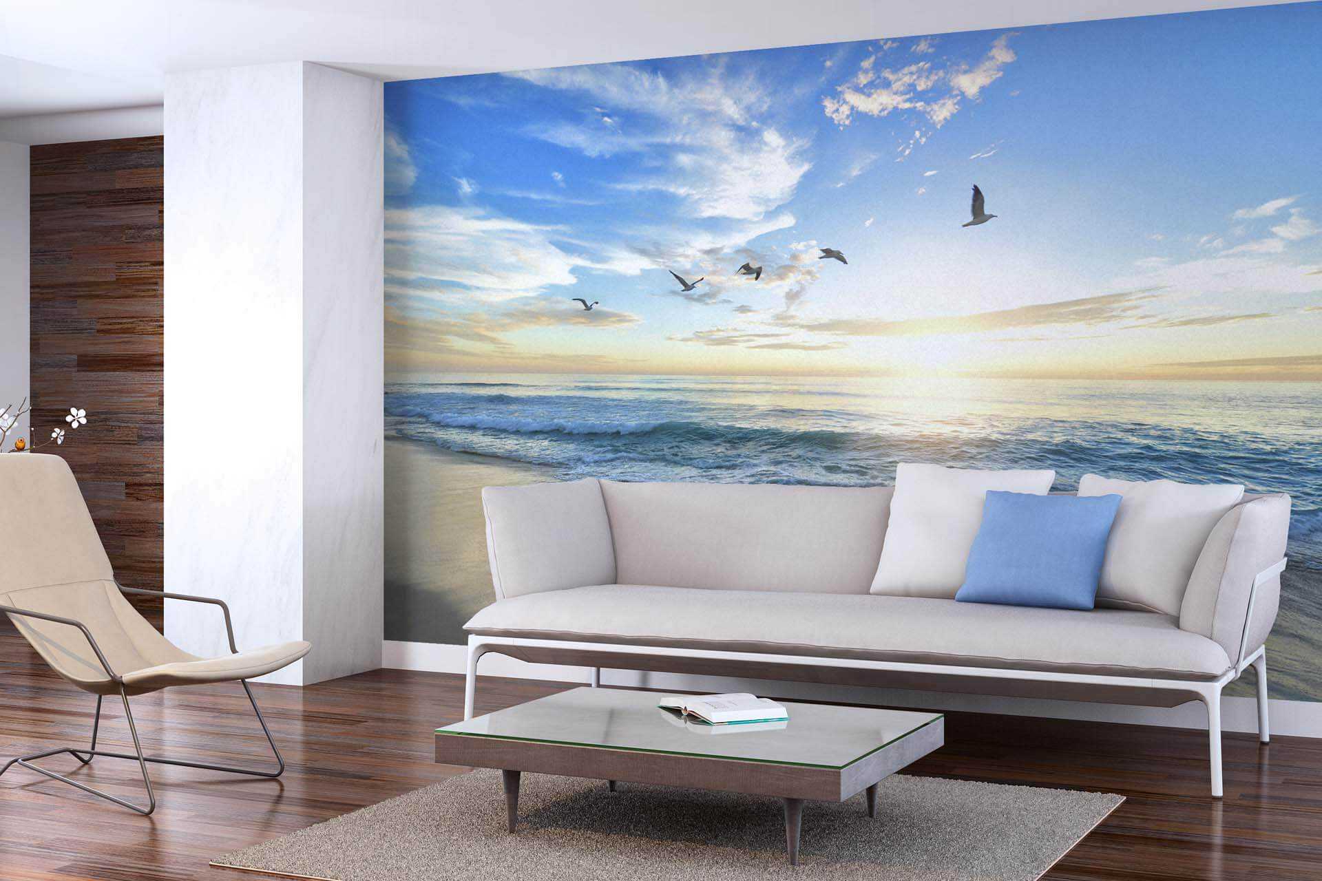 Интересным вариантом могут послужить обои для потолка, имитирующие небо — с их помощью можно добиться значительного эффекта расширения пространства за счёт создания иллюзии бесконечности.