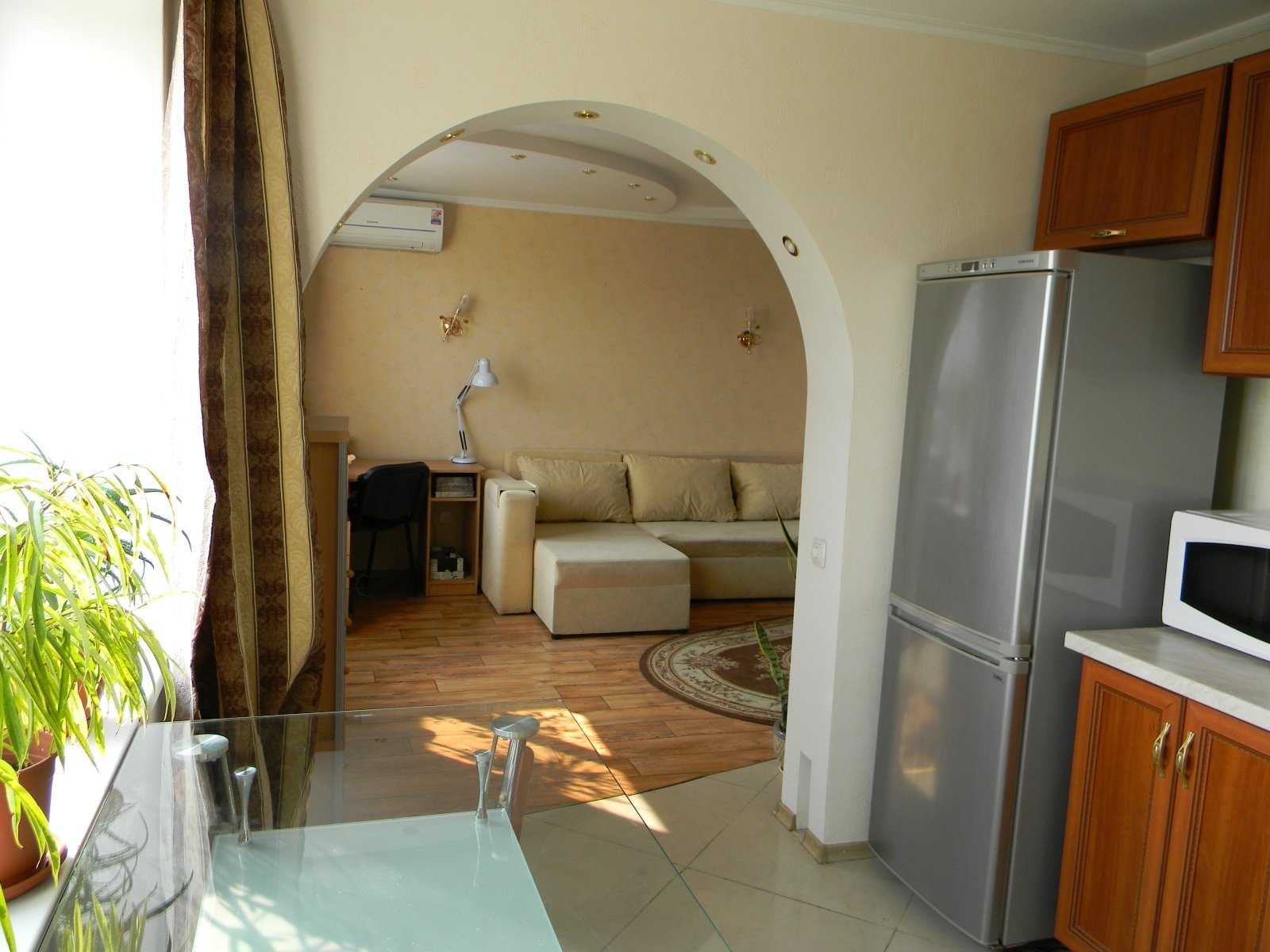 Возможно, придется прибегнуть к некоторым радикальным мерам — например, убрать стену между кухней и гостиной, или расширить помещение за счет объединения его с балконом. Также можно обустроить большую арку вместо обычной двери. Существуют разные способы перепланировки небольших помещений, нужно лишь выбрать наиболее оптимальный из них.