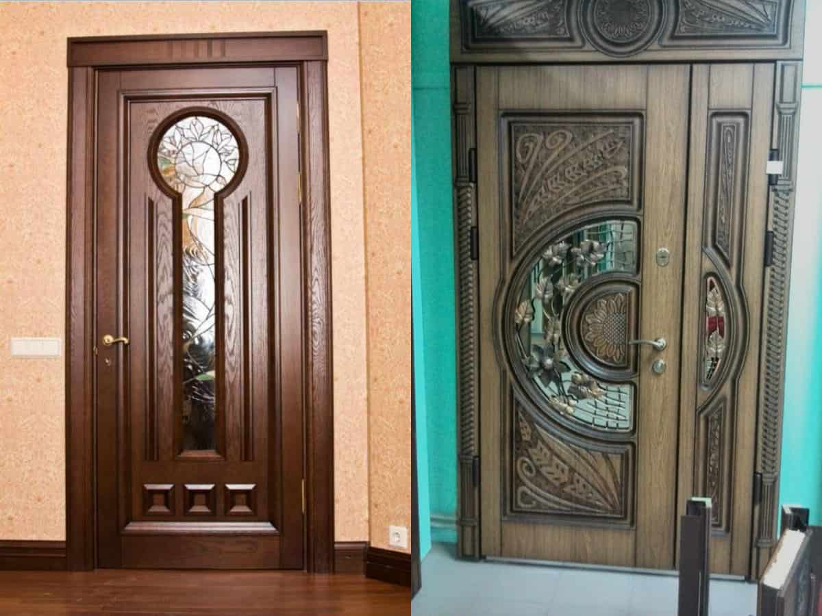 В моде двери с декоративными элементами. Например, солидно будут смотреться варианты со вставками из металла.