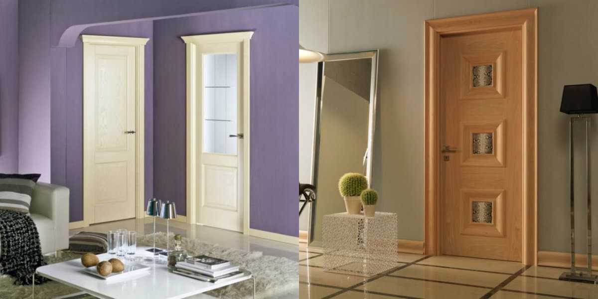 Известно, что из массива дерева двери получаются наиболее крепкими, стойкими к ударам, влаге и высоким температурам. Несмотря на это, варианты из шпона или экошпона позволят подобрать наиболее красивый вариант, благодаря широкому спектру цветов и оттенков. Пластиковые и прочие материалы используются для изготовления более дешевых аналогов. То есть они в разы дешевле, чем из массива, но одновременно с этим имеют простую систему монтажа.