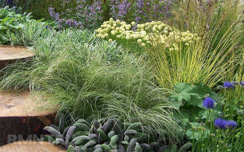 Необходимый атрибут ландшафтного дизайна — злаковые. Это осока, ковыль, перловник, сеслерия блестящая, овес, молиния, вейник и пр.