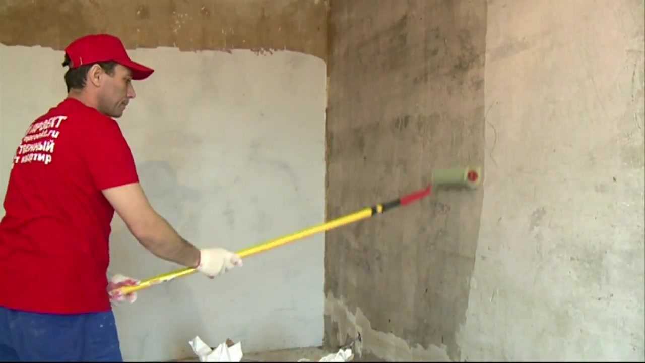 - После этого стены нужно несколько раз обработать пропиткой или специальным клеем.