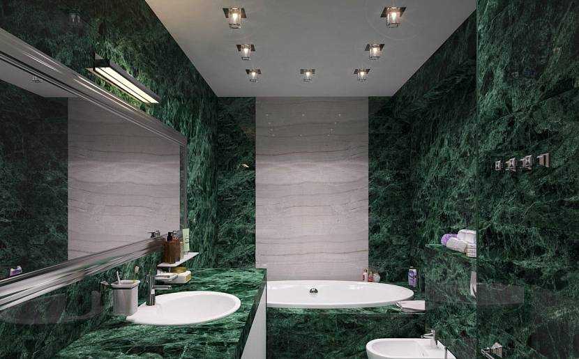 Комбинация светлого и тёмного мрамора в интерьере ванной комнаты