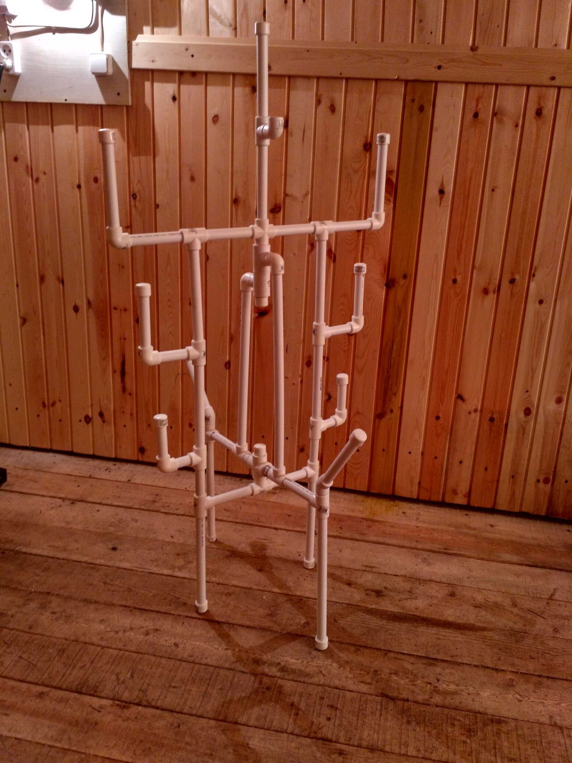 Если внимательно поискать, после ремонта квартиры или дачи остается много обрезков труб ПВХ. Это отличный материал для создания полезных в быту вещей, например, для сушильной конструкции. Она получится одновременно легкая, надежная и мобильная. Сооружение из труб можно переставить в другое место в любой момент без особых усилий.