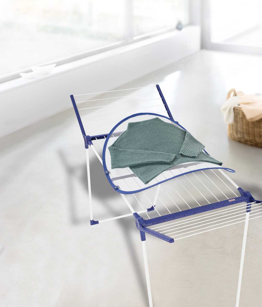 Представляет собой раскладную конструкцию, которую очень удобно использовать для сушки белья даже в небольших помещениях. Размеров конструкции в разложенном состоянии хватает на одну стирку. В сложенном виде сушилка занимает небольшое пространство, и не составит никакого труда убрать ее в кладовку или спрятать за шкаф.