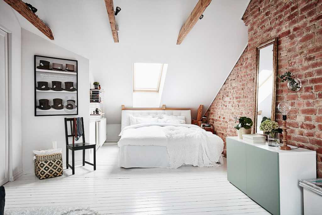 Подобная стилистика наилучшим образом подходит для оформления спальни на мансарде. Благодаря такому простому и размеренному дизайну, получается добиться умиротворенной атмосферы.