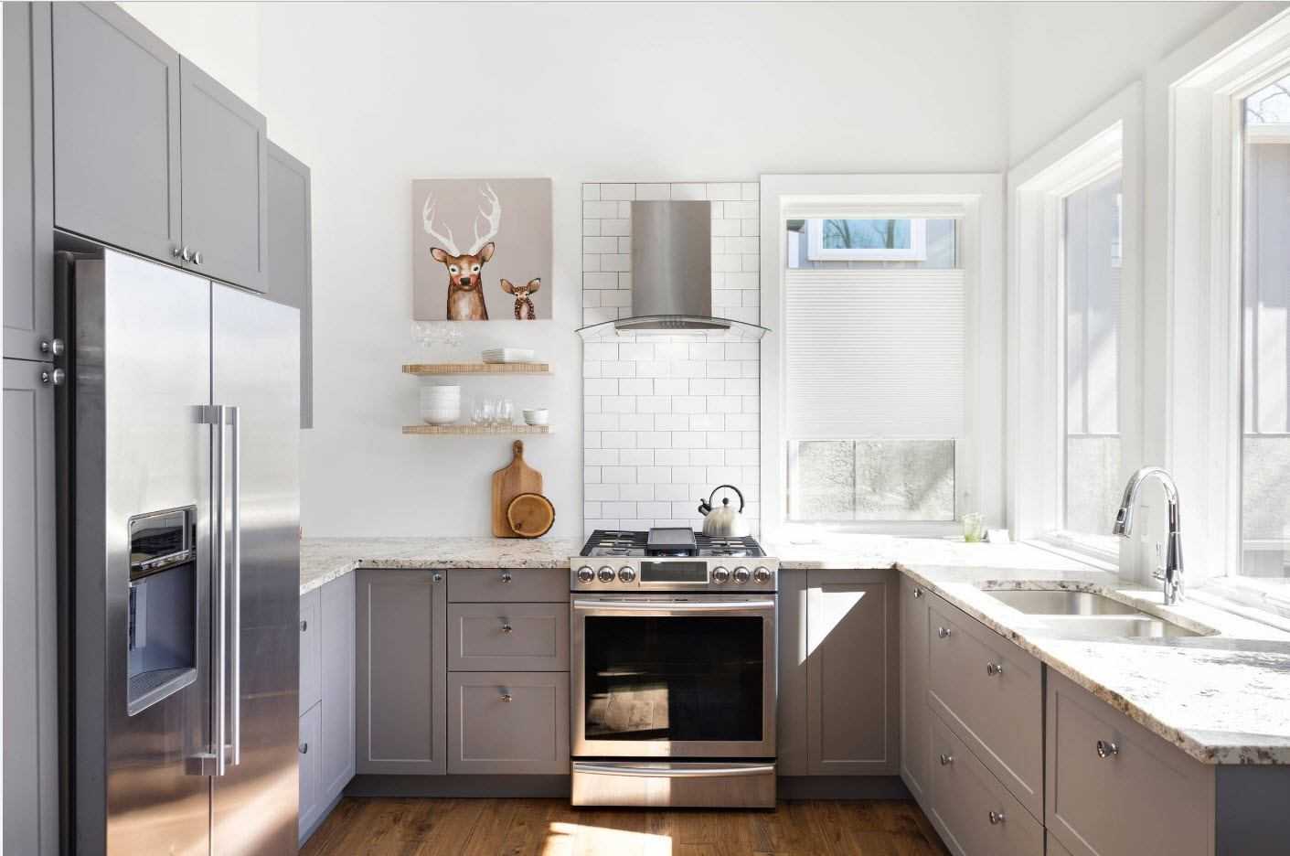 Скандинавский минимализм — отражение чистоты исландских фьордов среди заснеженных горных гряд. На кристально-белом фоне стен, потолка, мебели допускаются минимальные вкрапления почти прозрачных синевато-серых элементов или беленного дерева. Дизайн хрущевской кухни в таком стиле визуально увеличит помещение и подарит расслабляющий покой всем обитателям.