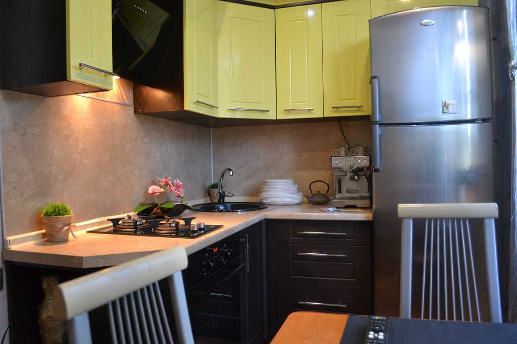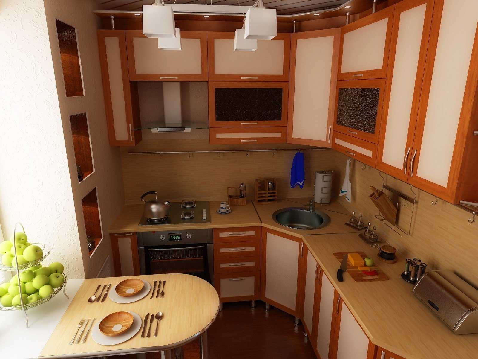 Если планировка квартиры и возможности позволяют, совмести маленькую кухню в хрущевке с гостиной или балконом. Это не удастся, если конструкция несущая, однако в большинстве случаев это не так.