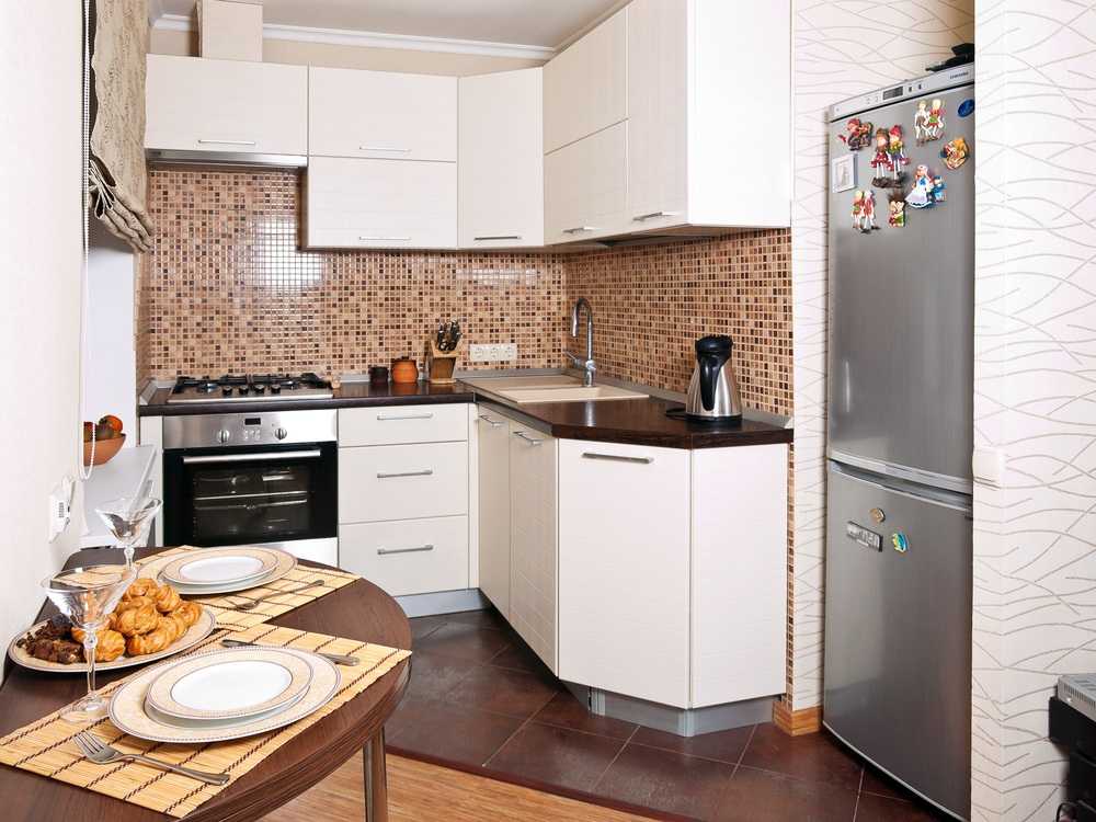 Стоит помнить, что большое количество ярких цветов, фактур, не сочетаемых между собой, способно испортить интерьер помещения, отделанного даже самыми дорогими материалами. Со вкусом подобранные материалы, способны придать изысканности и уюта даже маленькой кухне площадью 6 кв.м.