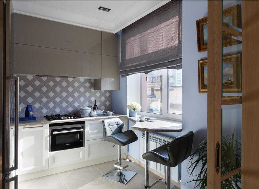 Если есть возможность согласовать перепланировку по присоединению лоджии к площади маленькой кухни, то стоит ей воспользоваться. Так удастся выделить место для обеденной зоны, барной стойки или небольшой зоны отдыха.