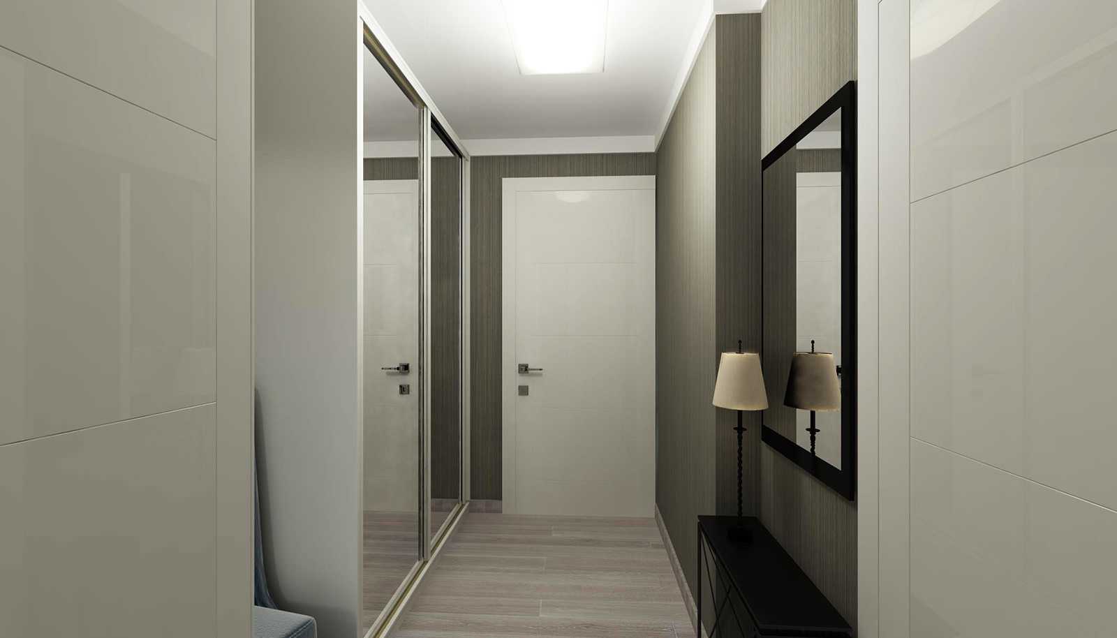 желательно отдавать предпочтение мебели в виде антресолей, чтобы стены полностью вписывались в пространство. Если в прихожей есть пороги, то от них лучше всего избавиться. В этом случае можно будет поклеить одинаковые обои и в коридоре, и в комнатах, прилегающих к нему. Такой дизайнерский прием позволит убрать четкие границы. А это, в свою очередь, даст больше пространства. Двери шкафов можно украсить фотопечатью в тон основным обоям. Если фотопечать будет выполнена в одной и той же тематике с обоями, то коридор будет выглядеть очень гармонично. При этом оттенок фотопечати следует подбирать под общий цвет помещения;