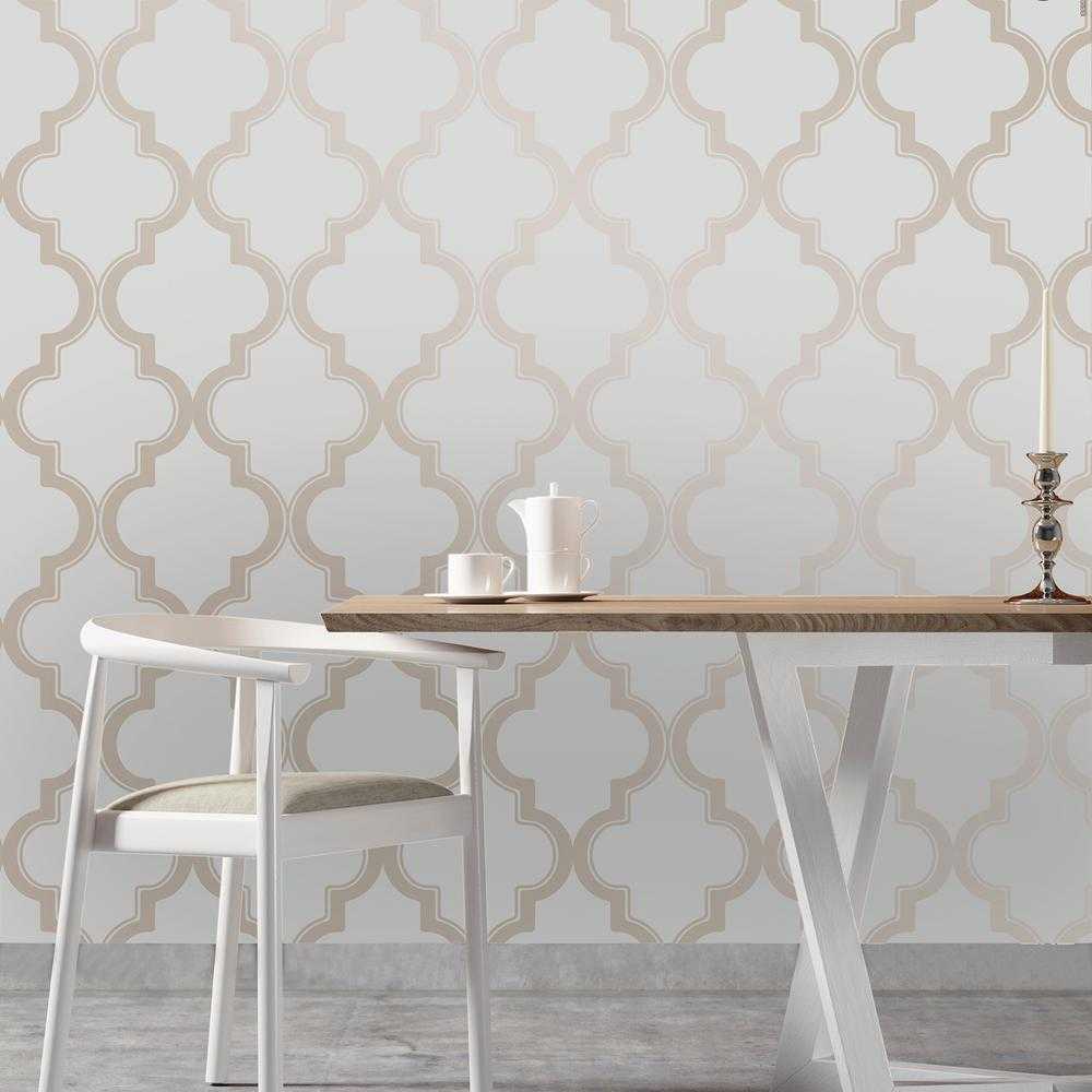 Не перегружайте интерьер маленьких помещений рисунками и контрастами, золотые обои с орнаментом в тон смотрятся изысканно и благородно, текстиль спокойных тонов дополнит дизайн и расставит акценты.