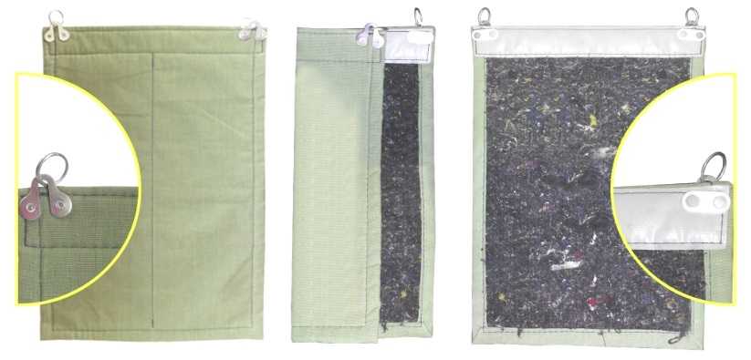 Теперь нужно в этот «чехол» поместить теплоотражающий материал. Это можно делать двумя способами: вставить ткань внутрь или же надеть «чехол» на нее так, как это делают с наволочками и подушкой.