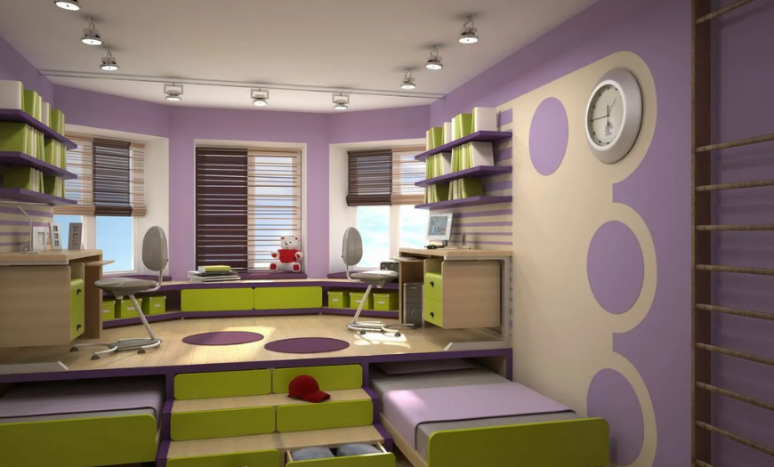 Желательно для каждого подростка выделить его зону при помощи цвета. Однако необходимо заранее подобрать оттенки и грамотно сочетать их между собой, чтобы не возникало сильного контраста или дисгармонии.