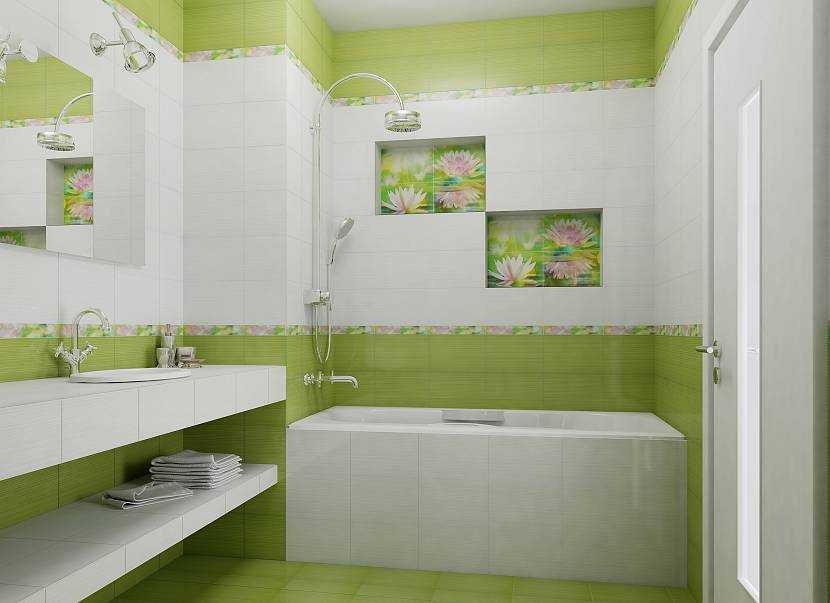 - Провести зонирование. Удачной идеей будет условно поделить совмещенный санузел на разные зоны, выделив соответствующие участки стены плиткой другого цвета. Темные виды отделки нежелательно использовать в любых зонах, кроме туалета. Рядом с умывальником и ванной на нее будут попадать брызги, оставляя после высыхания пятна. А на светлой плитке они будут незаметны.