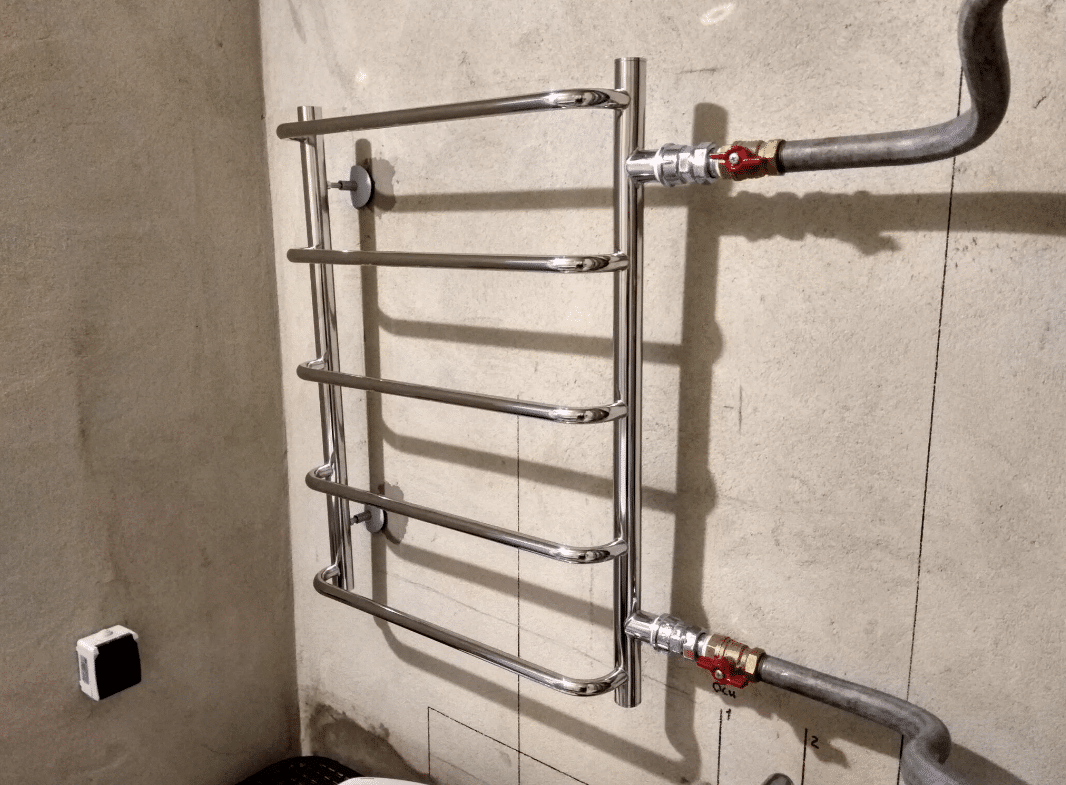Для установки полотенцесушителя не годятся трубопроводы, спрятанные под навесным потолком, под напольным покрытием. При скрытой прокладке труб создаются труднодоступные петли, в которых накапливается воздух, задерживается вода.