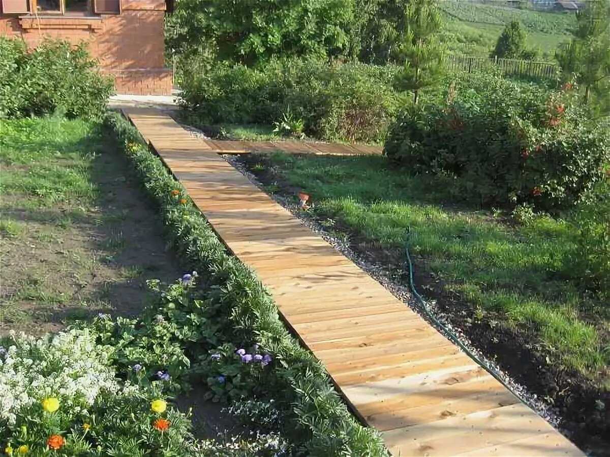 Например, можно на расстоянии небольшого шага уложить деревянные дощечки толщиной 30-50 мм. На них, кроме прочего, приятно ступать босыми ногами. При прохладной погоде они не кажутся холодными, а в жару не раскаляются на солнце.