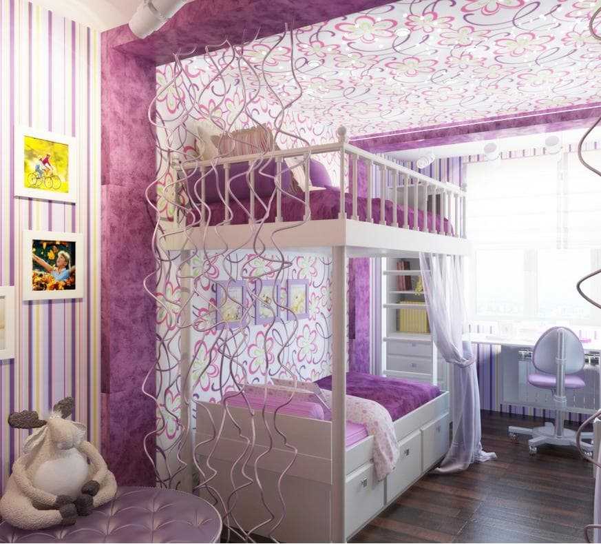При подборе палитры, которая будет использована в интерьере, следует учитывать, что для мальчиков идеальны оттенки фиолетового, подтон которых ближе к синему. А девочкам подойдут более светлые тона, в сочетании с розовыми и бежевыми штрихами