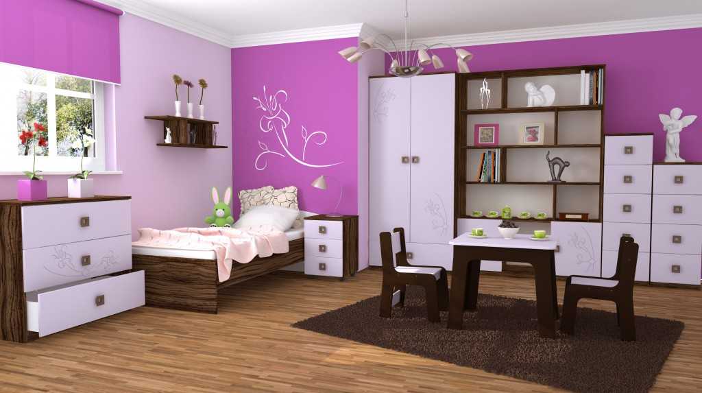 красного и синего цветов. Благодаря такому симбиозу, ребенок, проводящий много времени в фиолетовой комнате, не будет страдать мигренью, бессонницей и снижением иммунитета, а также станет активно развиваться в творческом плане.