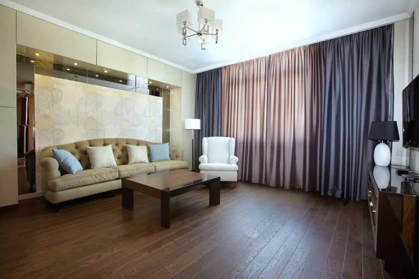 Интересный дизайн гостиной с двумя окнами (30+ фото)