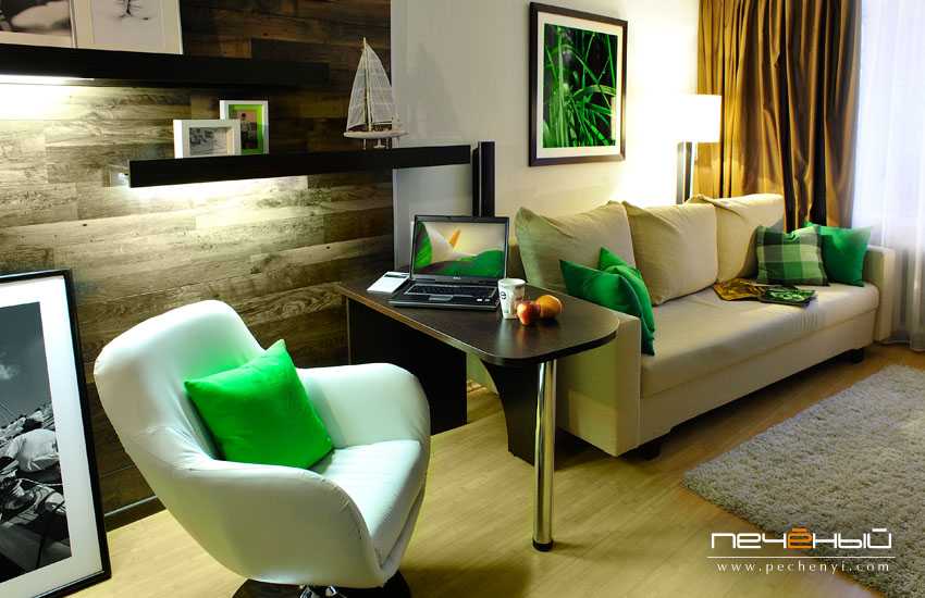 Обычно гостиная, кроме функции приёма гостей, выполняет еще и роль кабинета. Телевизор, компьютер и прочая техника находится именно здесь.