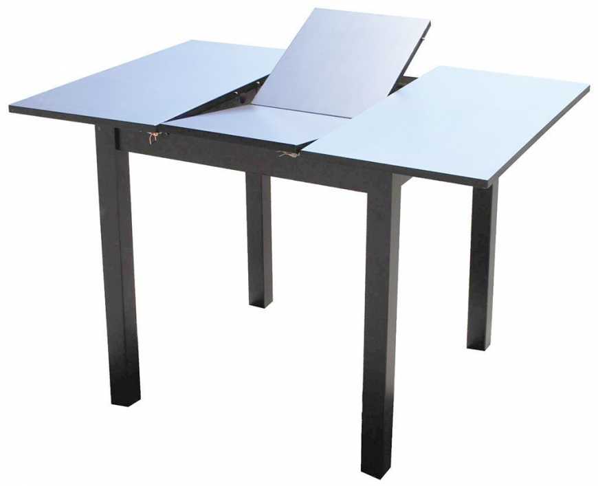 - Раздвижной. Столешница изначально состоит из двух деталей. Если потянуть их в стороны, то откроется ниша с пазами, в которую вставляется еще одна часть. За счет этого площадь стола заметно увеличивается. Лучше выбирать механизм из металла. Он несколько дороже, чем пластиковый, зато прослужит значительно дольше.