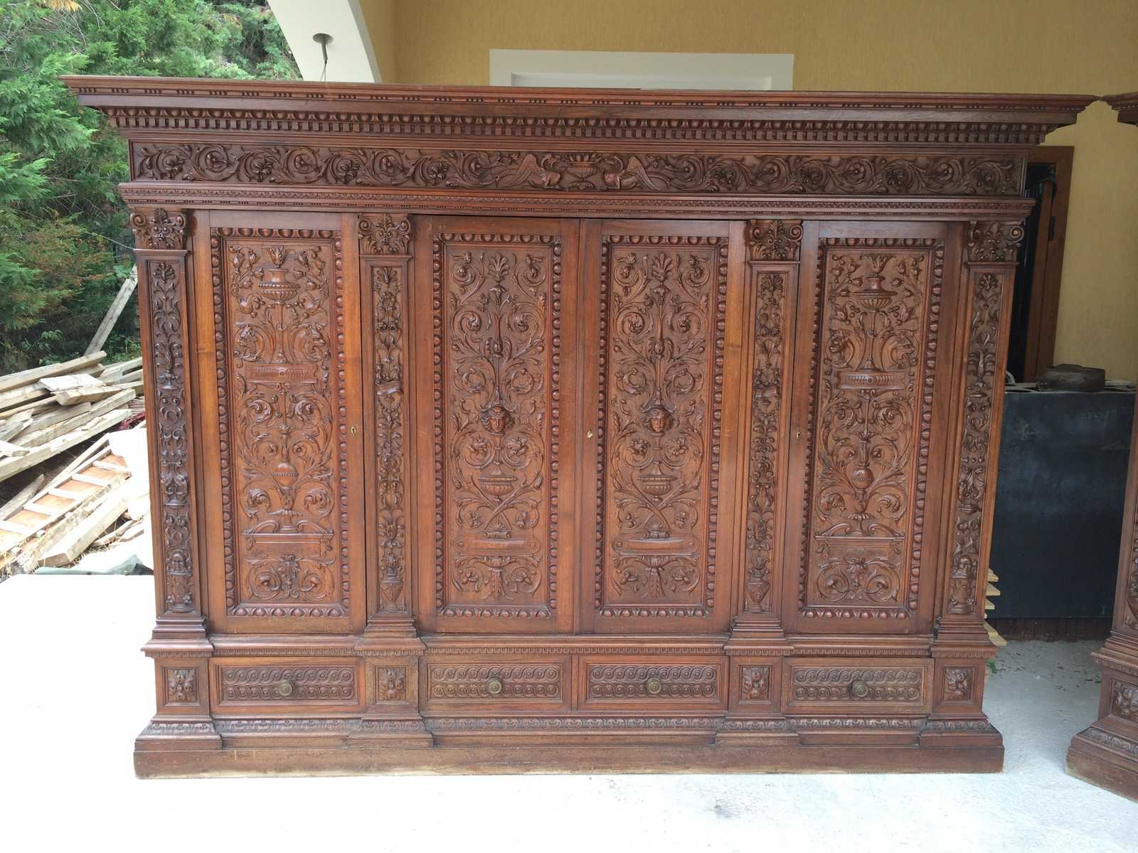 В качестве отделочных материалов применялись бронза, различные благородные металлы, камни. Дорогая мебель нередко инкрустировалась костями животных, панцирями, морскими раковинами, драгоценностями. И, конечно же, отличает предметы антиквариата наличие резных элементов в большом количестве. Это могут быть рельефные и плоские витиеватые узоры на поверхности изделий, а также выпуклые, объемные или ажурные элементы, выполненные вручную искусным мастером. Зачастую такая отделка резьбой уникальна для каждого отдельного предмета и не повторяется больше нигде.