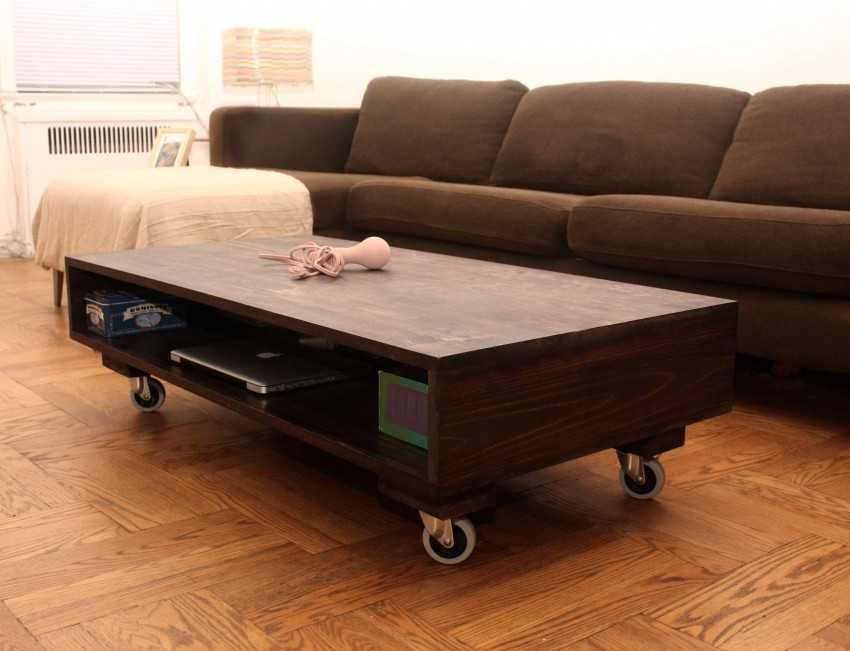 Вы можете включить воображение и посмотреть на подручные материалы, может ненужные предметы мебели, вещи – из всего этого можно сделать интересный журнальный столик.