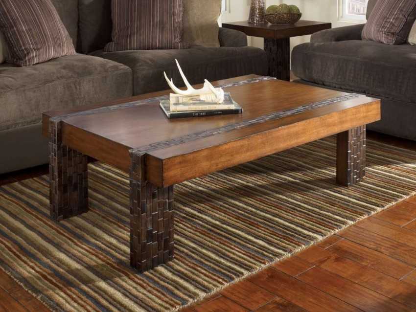 Обычно при увеличении высоты уменьшается площадь столешницы, и наоборот, классический низкий столик из дерева должен иметь широкую крышку.