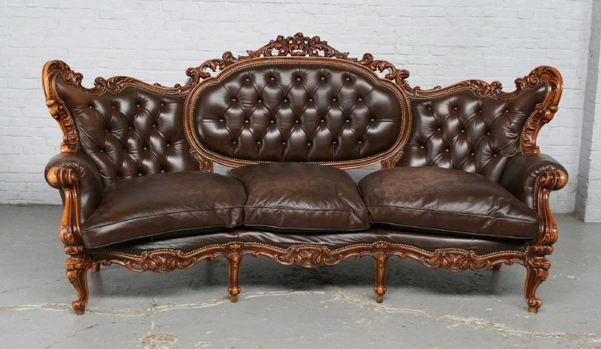 Металлическая окантовка отдельных деталей мебели — еще один характерный признак антиквариата. Обивка для стульев, кресел и диванов делалась из натуральной кожи. Также использовался в этих целях дорогой текстиль (например, шелк, парча, гобелен).
