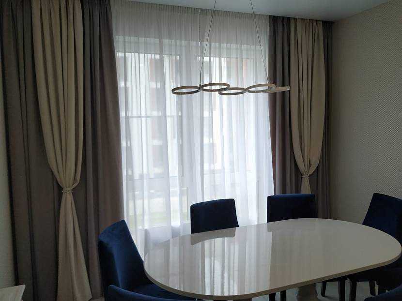 В помещениях с южной или западной стороны, а также для квартир ниже 7-го этажа больше подойдет сочетание прозрачных гардин с тяжелыми портьерами. При сильном солнечном свете или в темное время суток плотные шторы создадут в помещении необходимую прохладу или приватность. Для такого комплекта подойдет тюль из нежной, прозрачной ткани без дополнительных элементов декора.